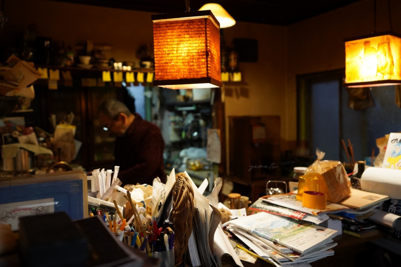 「我也很喜歡電影。」我以貧乏的日文撬開話匣子。老爺爺得知我們來自台灣,眼神一亮,迅速返回吧台的書山之中。